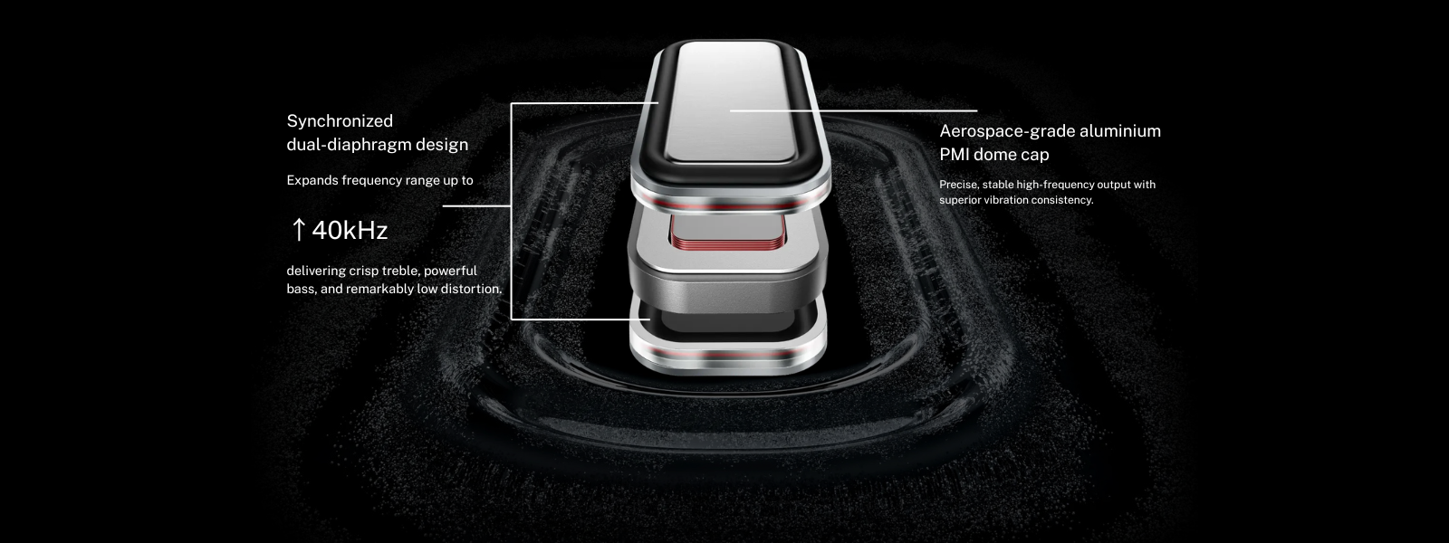 OpenFit Pro delivers sound that's dynamic and distortion-free. The dual diaphragms of the 11 × 20 mm ultra-large driver work in sync to reveal rich detail, smooth highs, and deep lows.