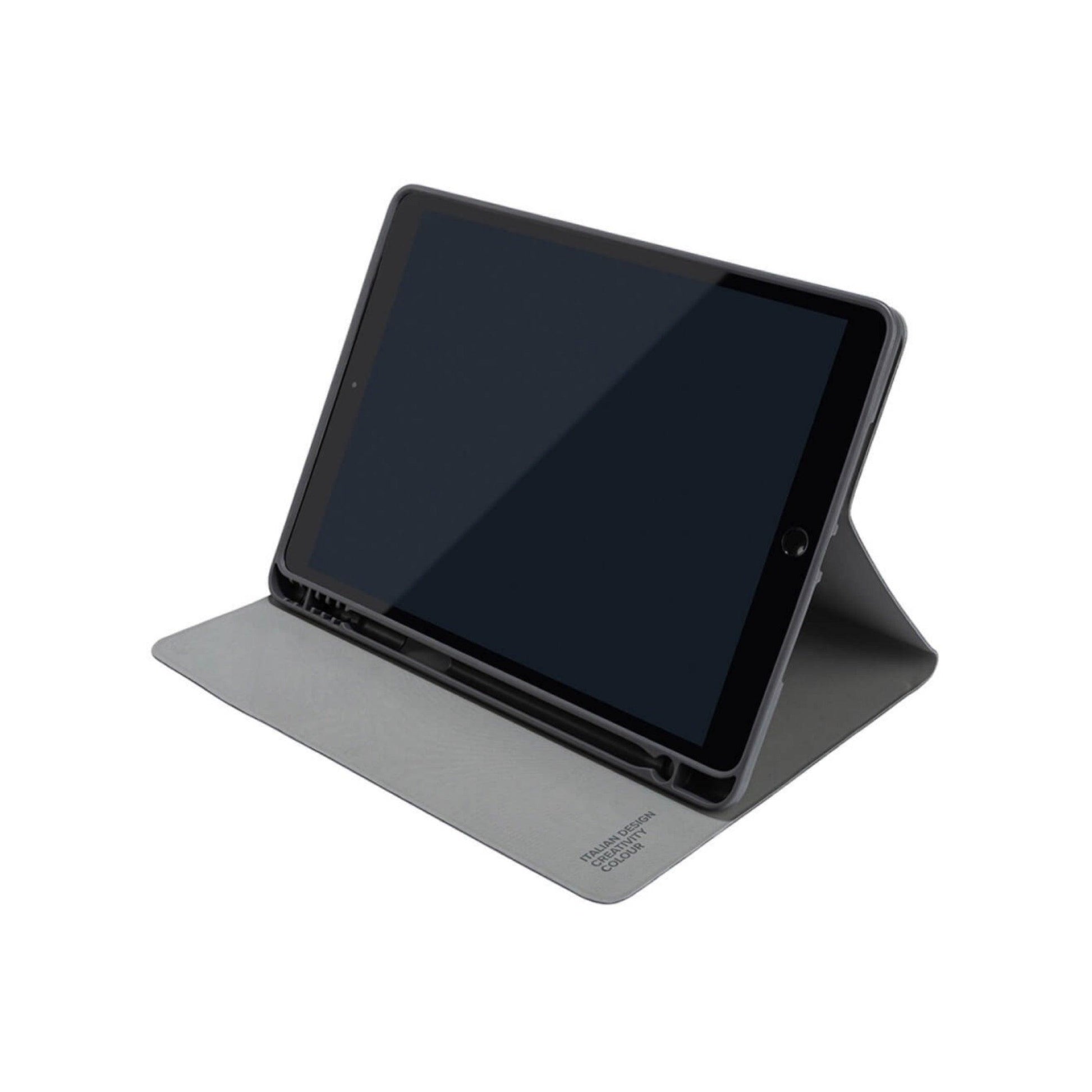 DATA SHEET ● On/off function ● Fold-and-shoot: the practical flap is foldable for easy access to the rear camera ● Apple Pencil's internal support ● Back panel convertible in a practical stand with different positions ● Semi-rigid back shell in TPU in satin finishing