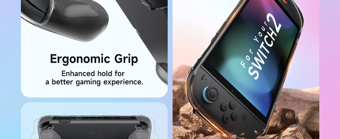- 【Ergonomic Design】: Long gaming sessions can lead to hand fatigue and discomfort, but our case designed for Switch 2 protective case is ergonomically optimized to reduce fatigue and improve gaming endurance. The contoured grip is designed to conform to the natural curvature of your hand, giving you an easy, claw-free grip and minimizing pressure points.