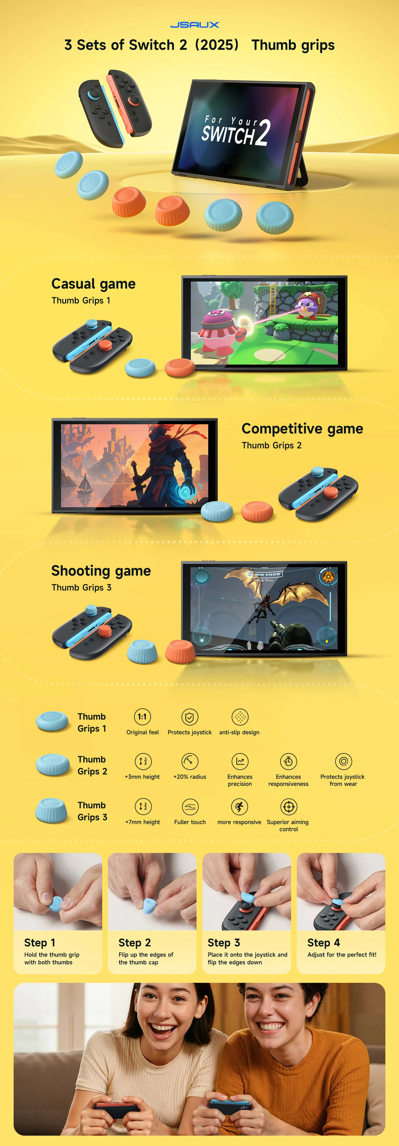 - 【Exclusively Designed for Switch 2 (2025)】: These thumb grips are precisely crafted for Switch 2, ensuring a snug fit that stays secure during gameplay. Note: Only compatible with Nintendo Switch 2 (2025)