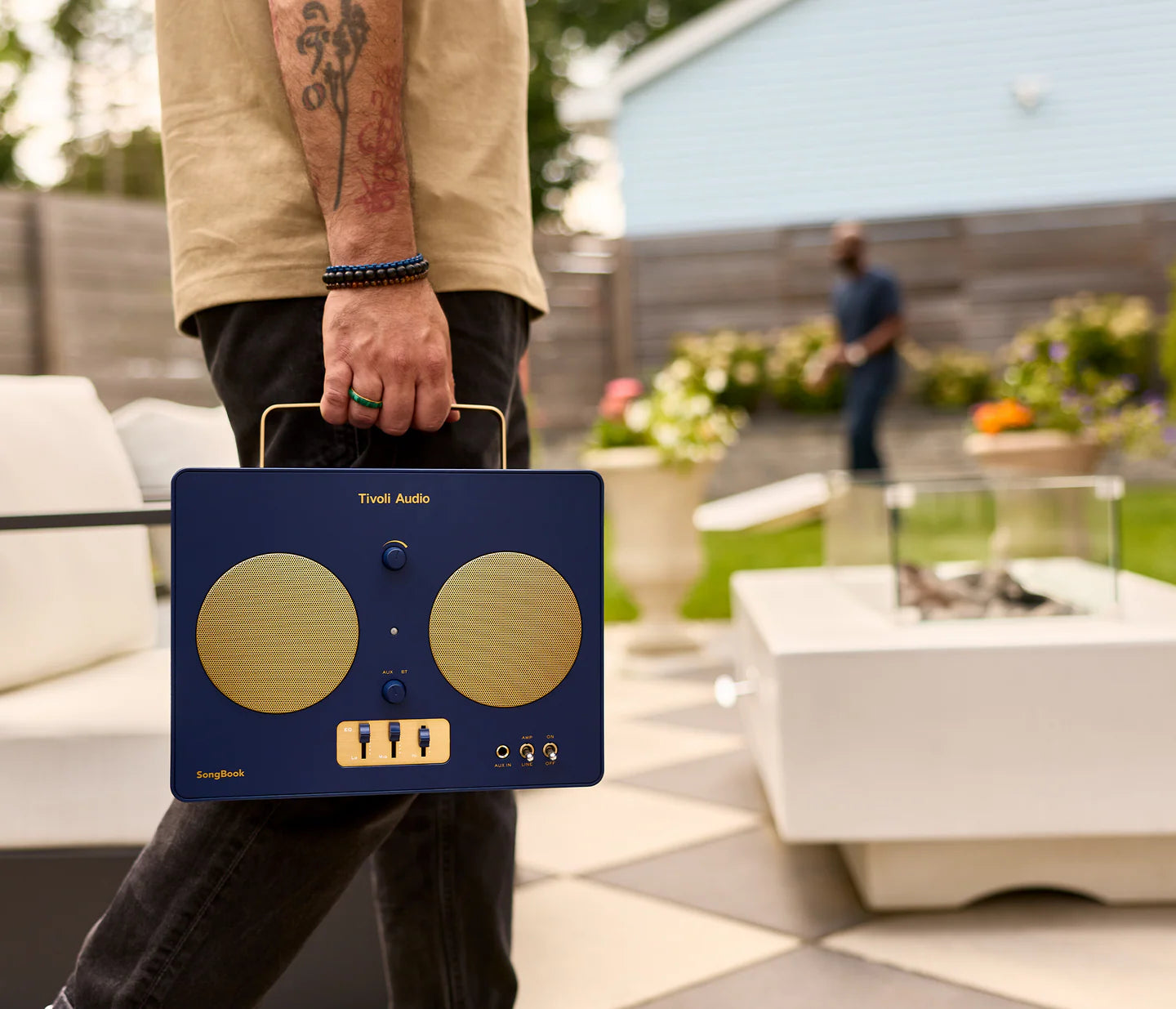 The SongBook blends the warmth of analog control with high-performance audio design. With one woofer, and one full-range driver tuned to deliver a deep and detailed sound, this isn’t just loud – it’s layered, nuanced, and symphonic. All powered by a rechargeable battery.